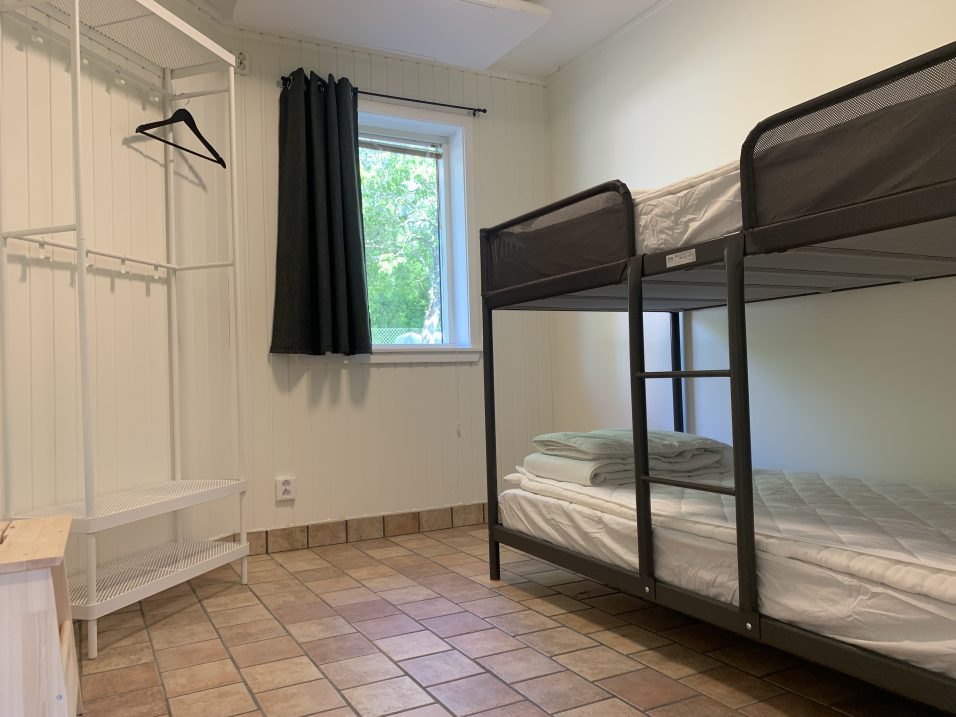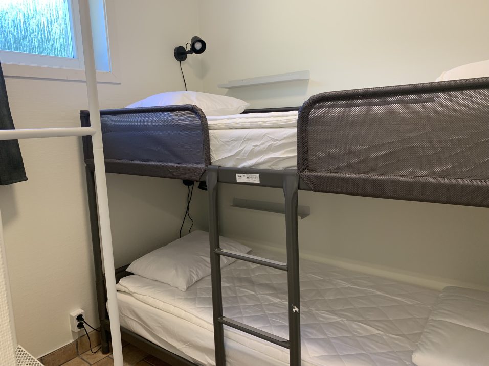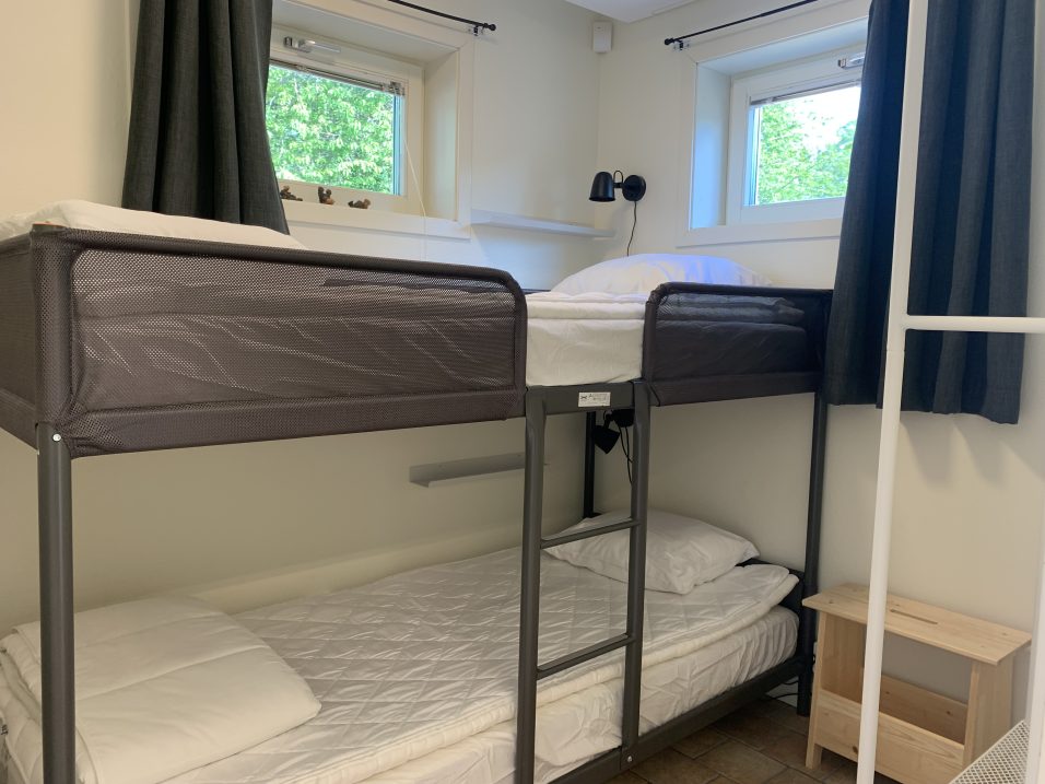 Stugan har 8 bäddar fördelat på 4 sovrum med 2 bäddar i varje (våningssängar i 3 av sovrummen).